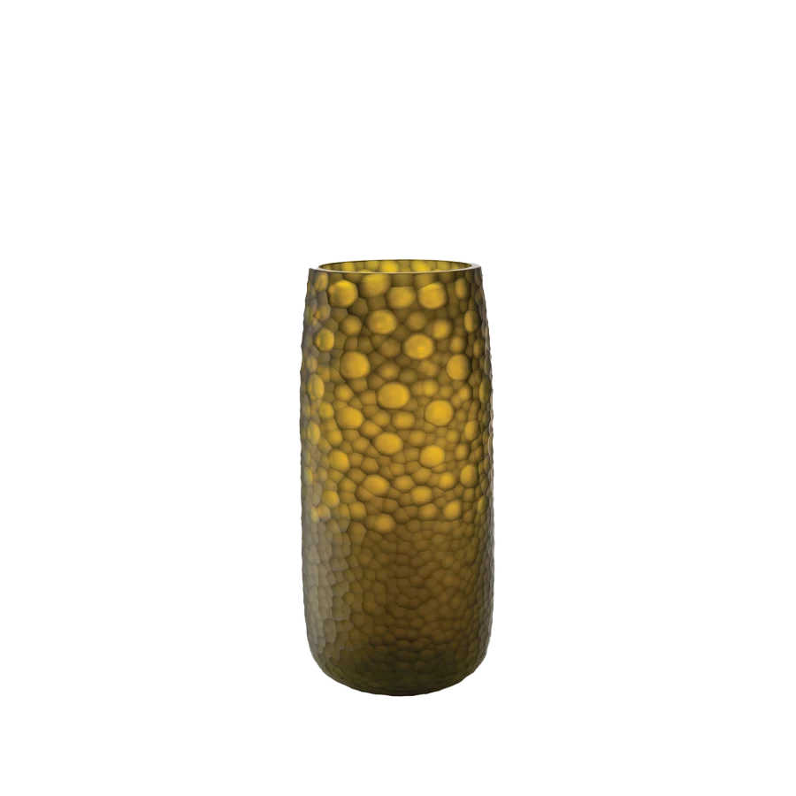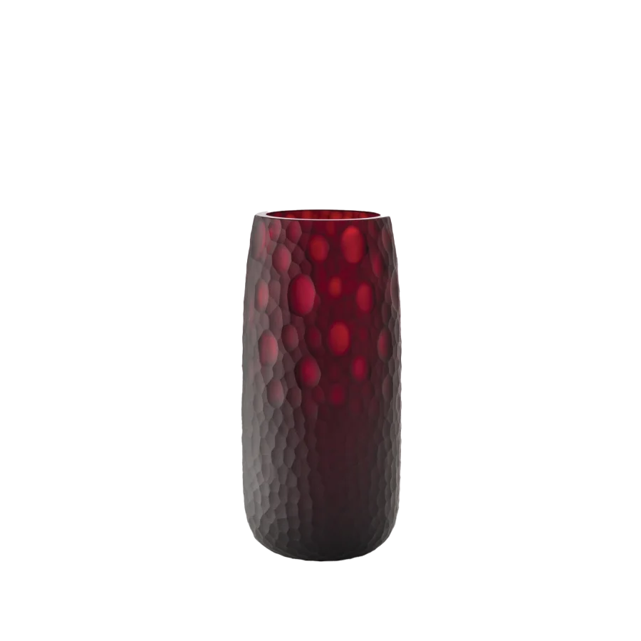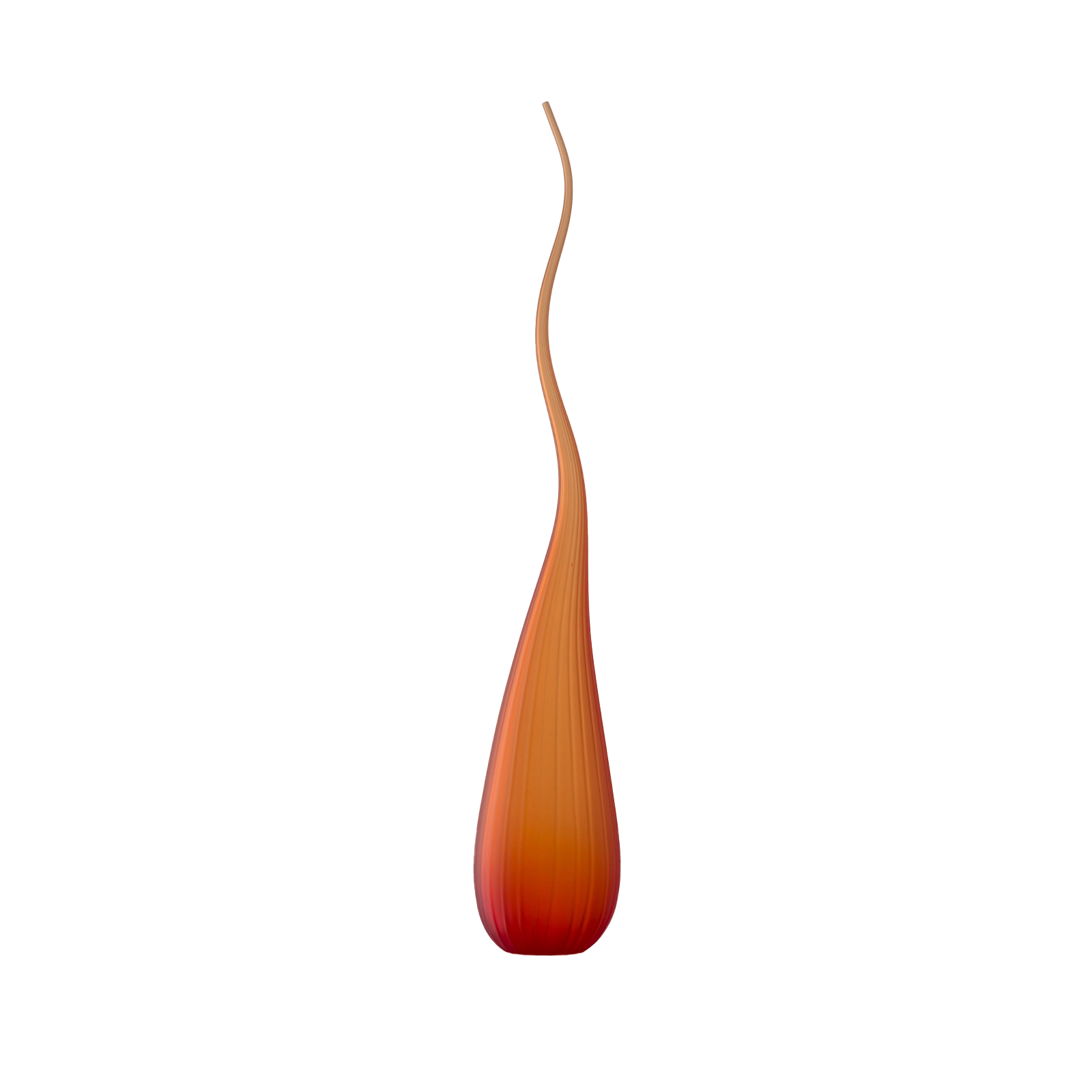 Элементы, выдутые вручную, имеют извилистую форму, сужающуюся кверху, и подчеркнуты вертикальными линиями, оттискенными с использованием техники «ригадин».