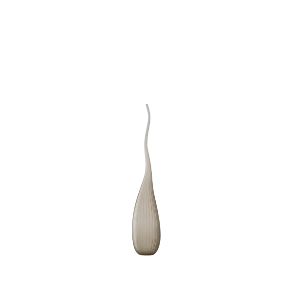 Элементы, выдутые вручную, имеют извилистую форму, сужающуюся кверху, и подчеркнуты вертикальными линиями, оттискенными с использованием техники «ригадин».