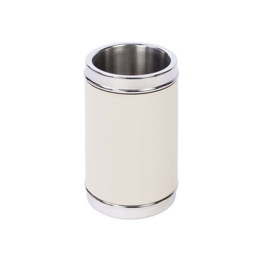 Частично обтянутый кожей изолированный охладитель для бутылок из нержавеющей стали с сатиновым покрытием.