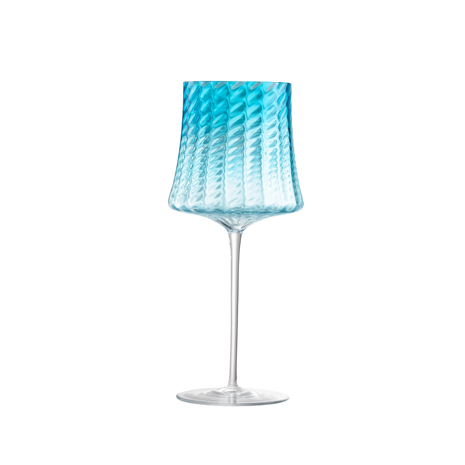 Бокалы для красного вина из муранского стекла объемом 55 мл. Ножка и основание изготовлены вручную, а чаша создана с использованием деревянной формы и имеет извилистую, сужающуюся кверху форму, типичную для высоких бокалов и стаканов из той же коллекции.