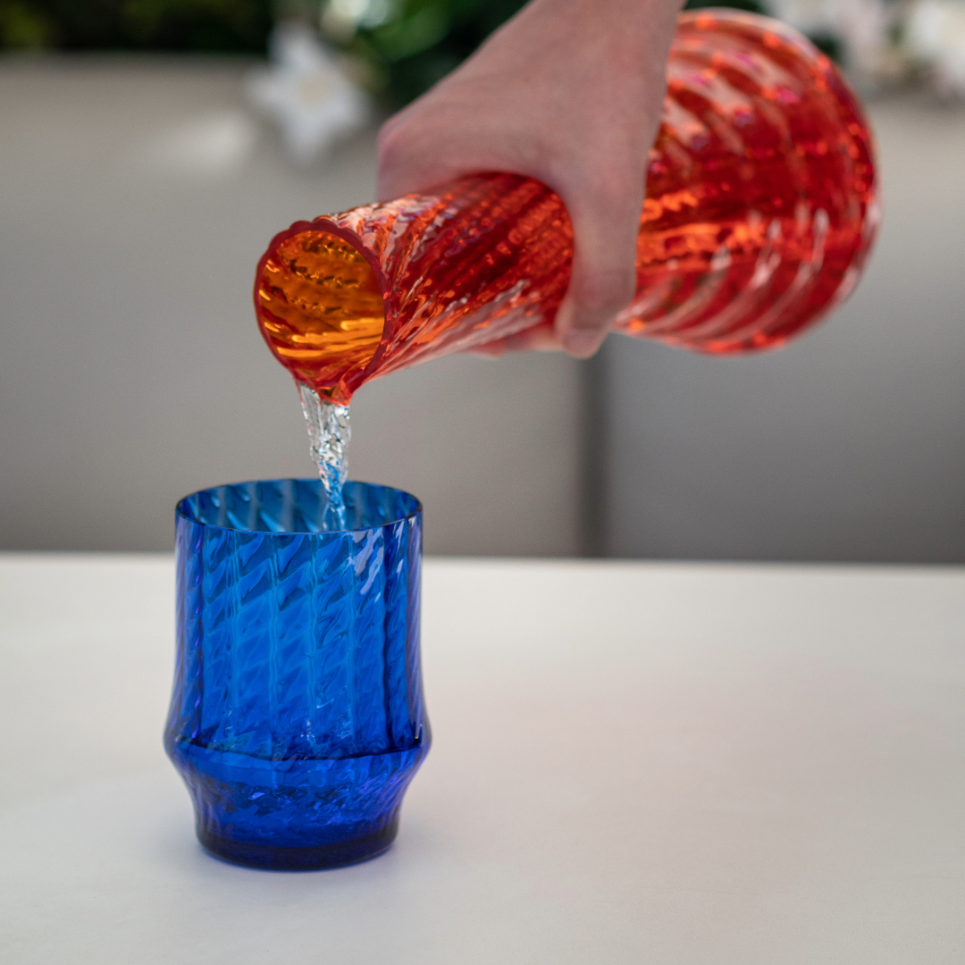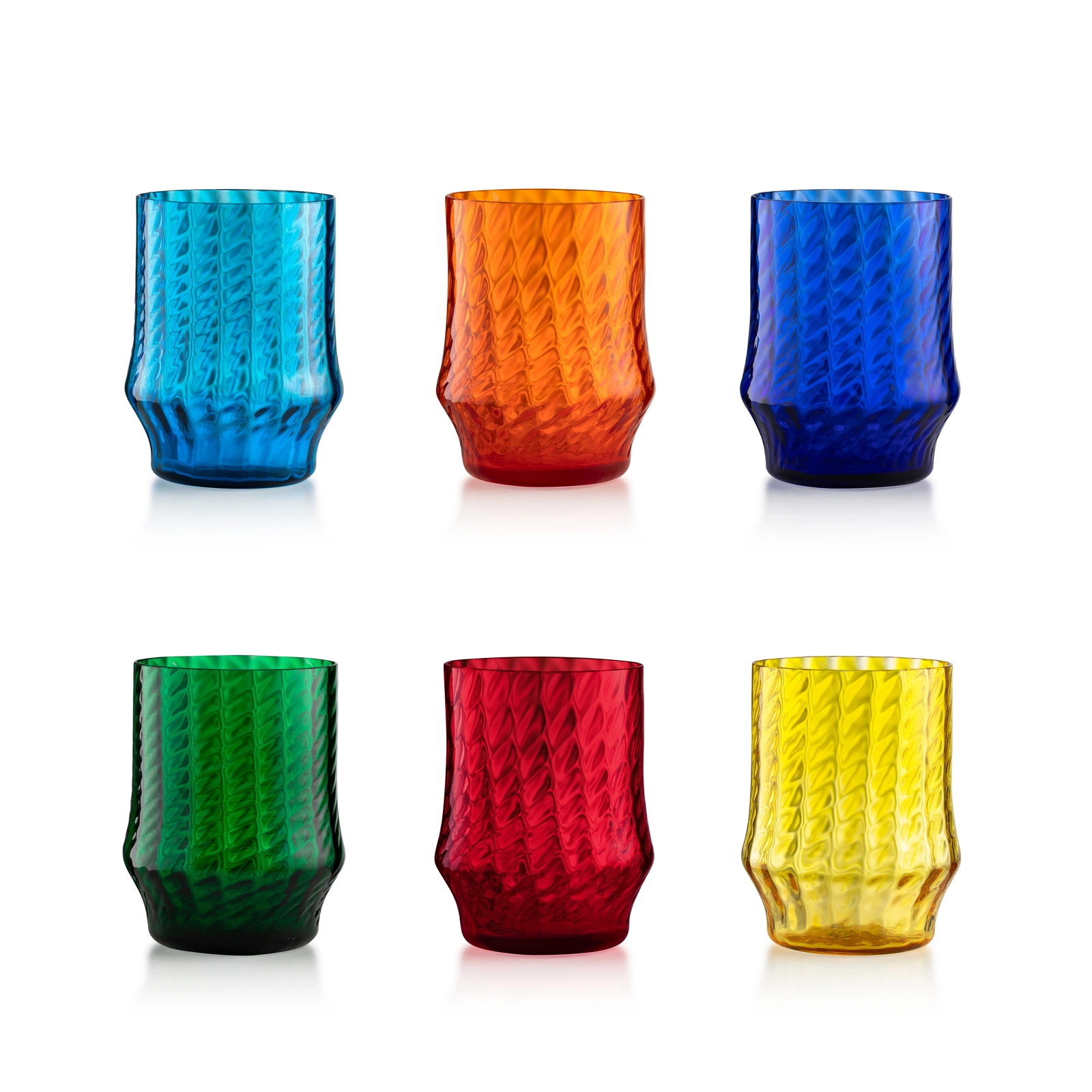 Стаканы из муранского стекла ручной работы изящной, сужающейся формы, представленные в шести различных цветах.