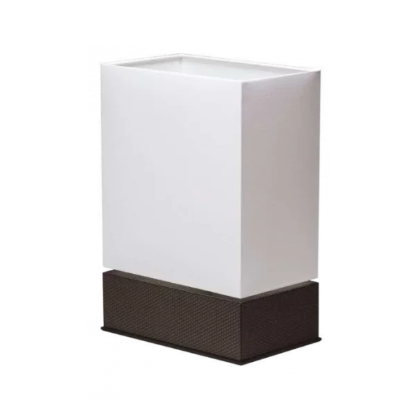 Деревянный держатель лампы, обтянутый кожей, на металлическом основании, доступном в трех вариантах отделки (полированный хром, матовая бронза, матовая латунь).