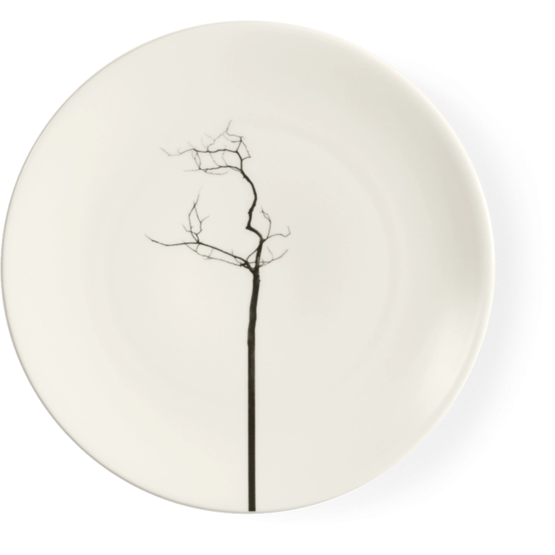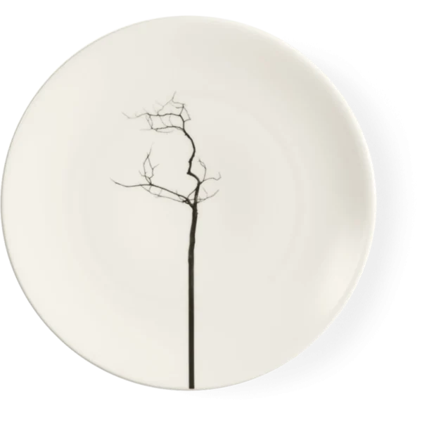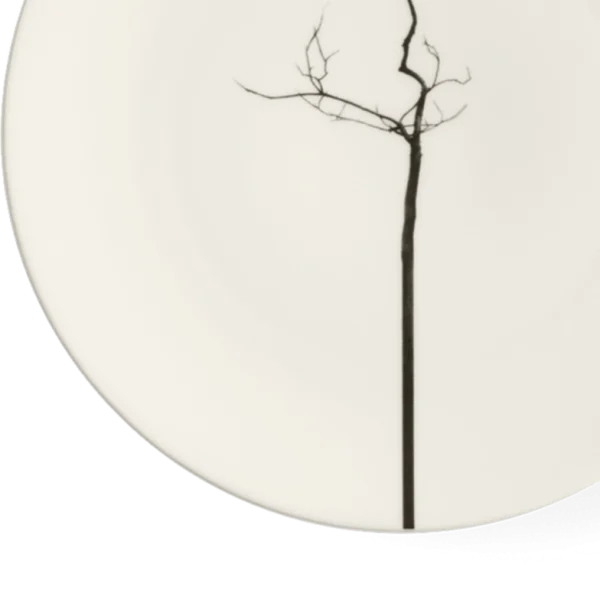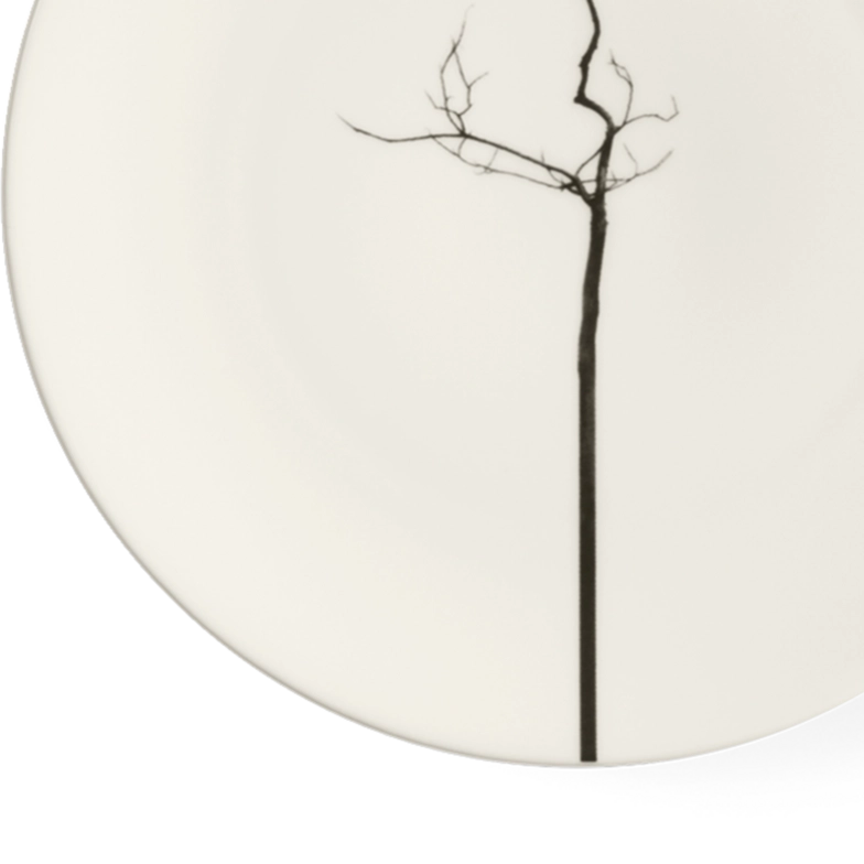 Вдохновленная природой, современная и индивидуально оформленная композиция. Различные силуэты черных деревьев изящно расходятся по чашкам и тарелкам, выглядя одновременно естественно и абстрактно. Ствол дерева продолжается за края чашек и превращается в графический элемент.