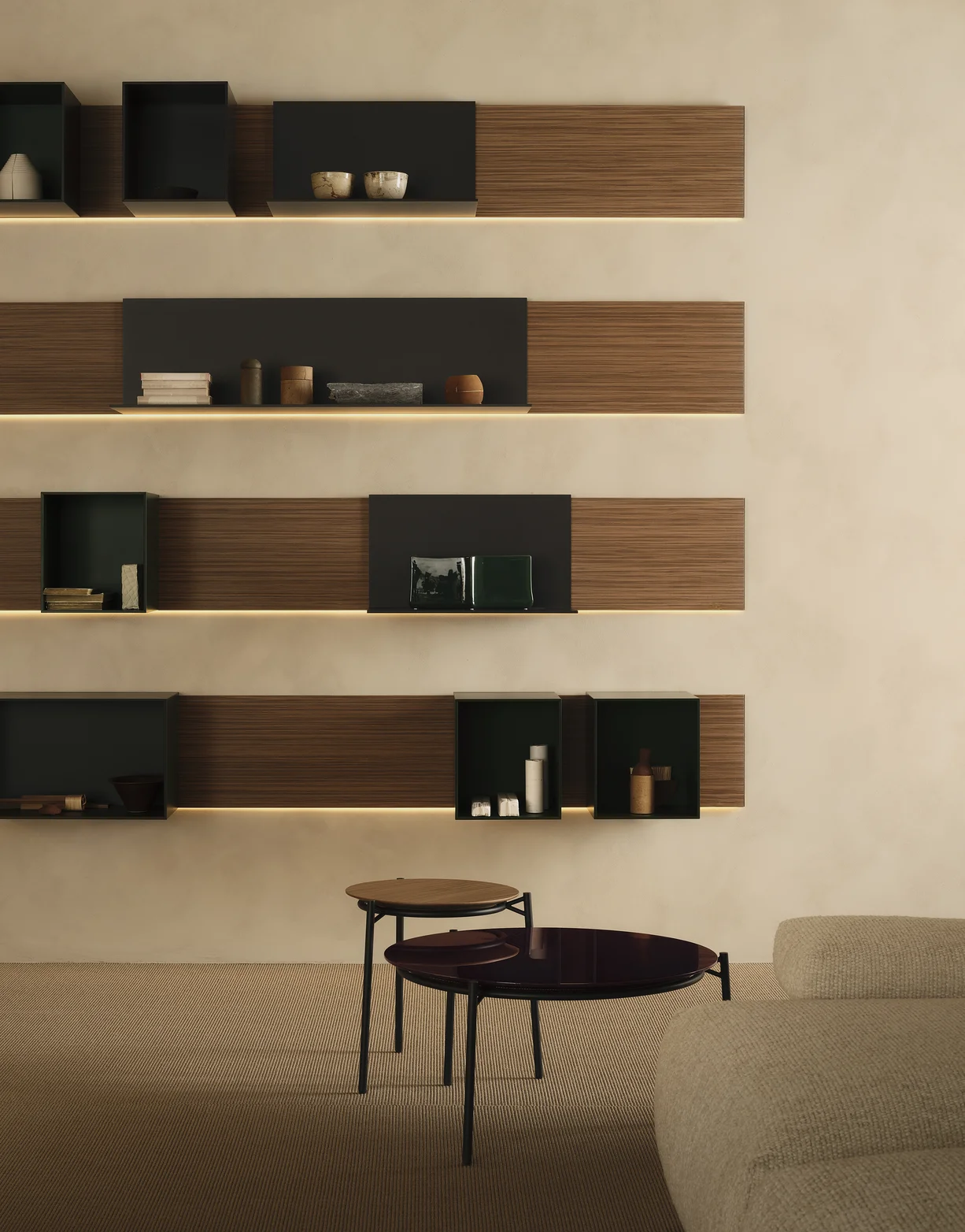 Низкий столик Cantle, идеально подходящий как самостоятельный предмет мебели, также может быть использован в модульных комбинациях, создавая динамичные и универсальные композиции, подходящие как для жилых интерьеров, так и для общественных пространств.
