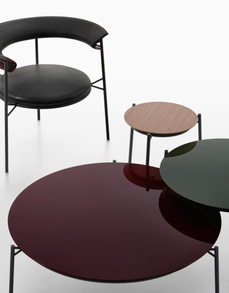 Знаменитая деталь кресла Cantle – характерная V-образная консоль – становится определяющим элементом и этого низкого столика, создавая ощущение парения и выступая в качестве визуальной нити, объединяющей всю коллекцию. Стальной каркас образует графичный, минималистичный силуэт, поддерживающий столешницу, доступную в различных размерах и отделках: орех Canaletto, чёрный ясень, белёный дуб и различные глянцевые лакированные цвета.