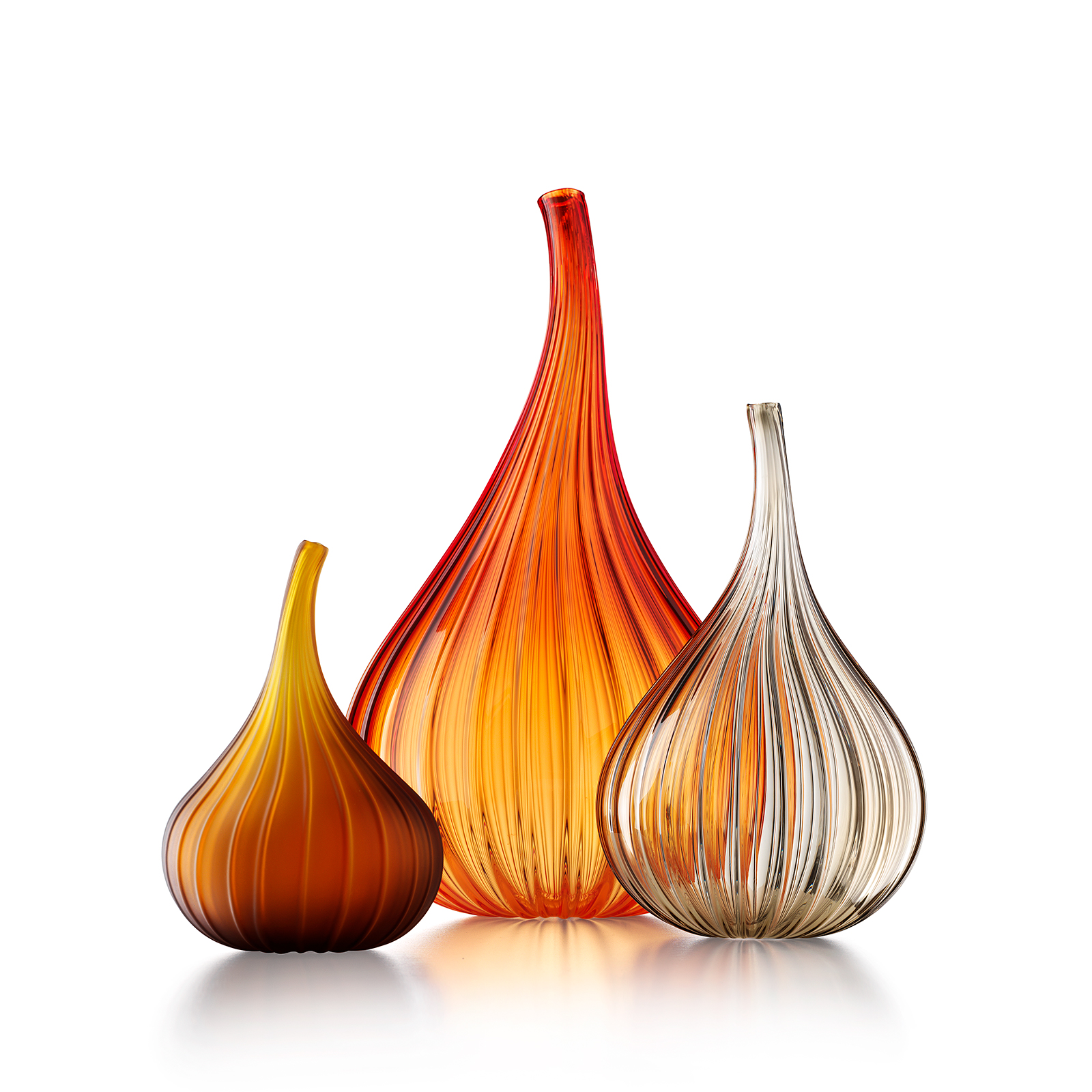 Ваза из выдувного стекла, украшенная рисунком «ригадин» и сформированная вручную.