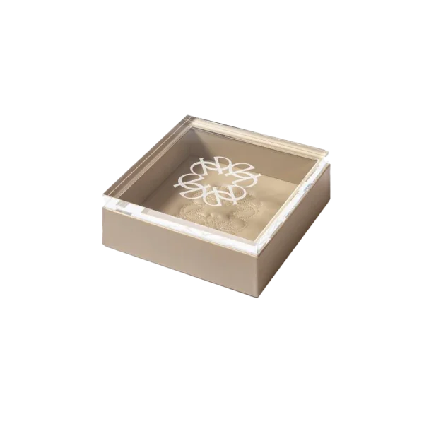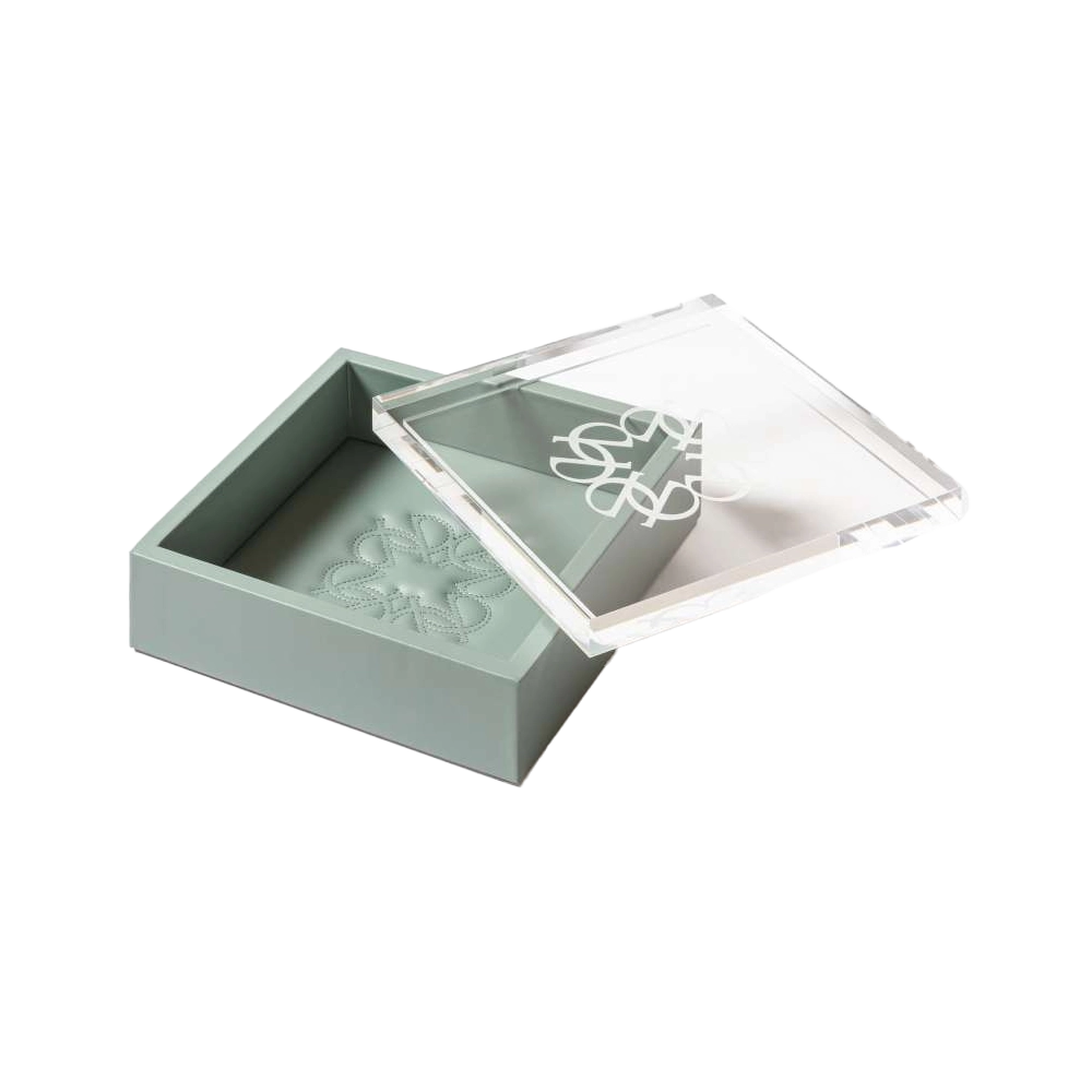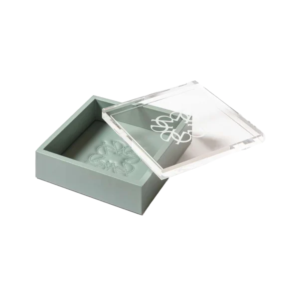 Кожаная шкатулка с мягкой подкладкой с монограммой ELIE SAAB и резной акриловой крышкой.