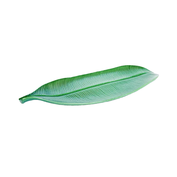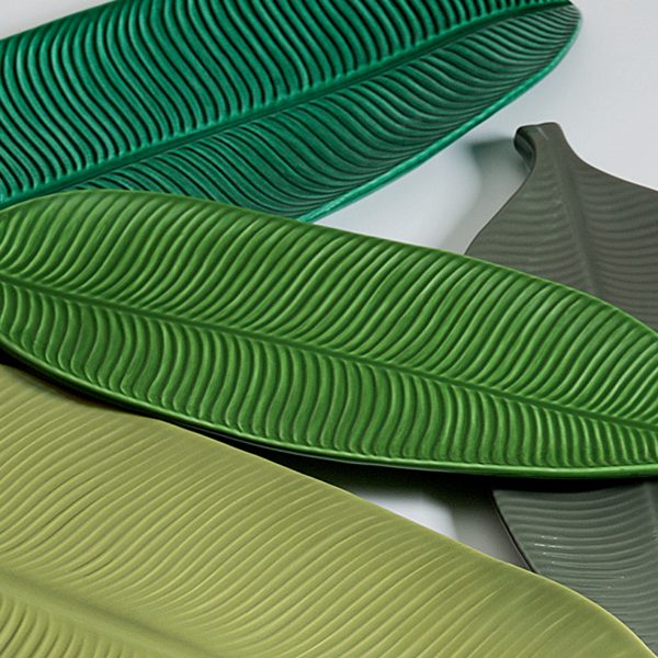 Коллекция «Banano Leaf» – это серия керамических тарелок в форме банановых листьев, каждая из которых точно воспроизводит тонкие детали рисунка листа на своей поверхности.