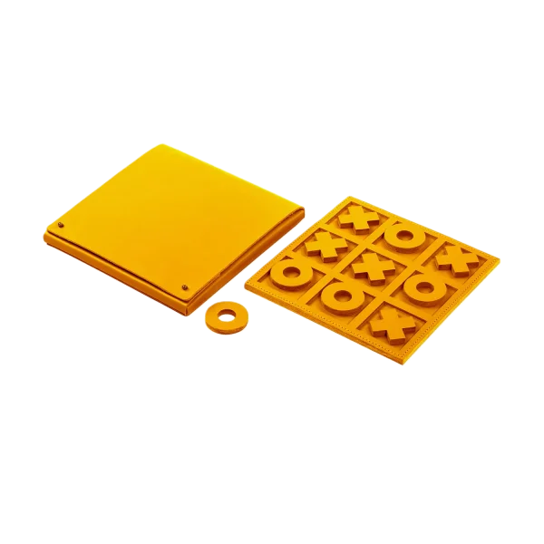 Набор и футляр для игры в крестики-нолики из коллекции игровых наборов Giobagnara. Его можно взять с с собой в поездку, подарить близкому человеку или добавить в личную коллекцию. Изготовлено из водостойкой шорно-седельной кожи, окрашенной в изысканный горчичный оттенок и прошитой в тон.
