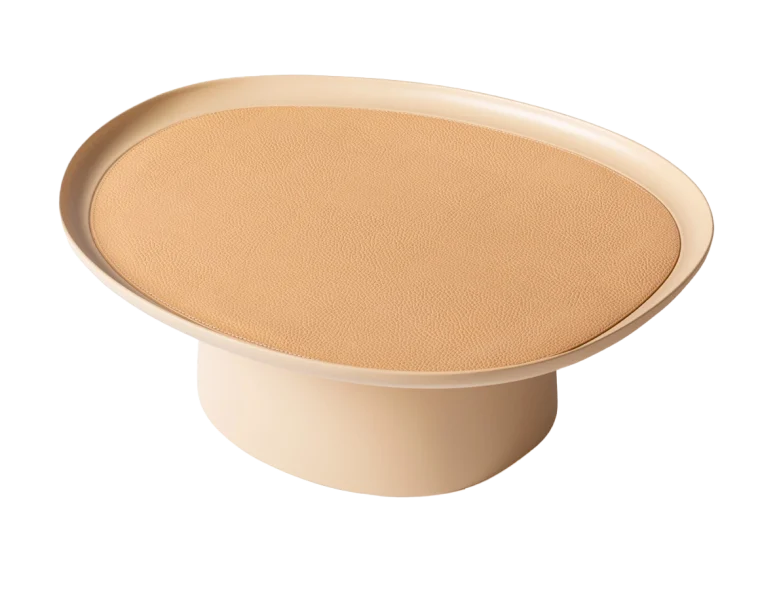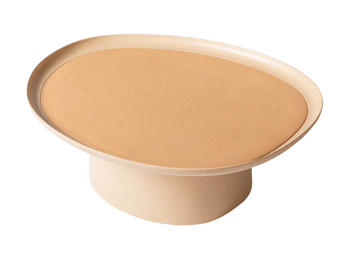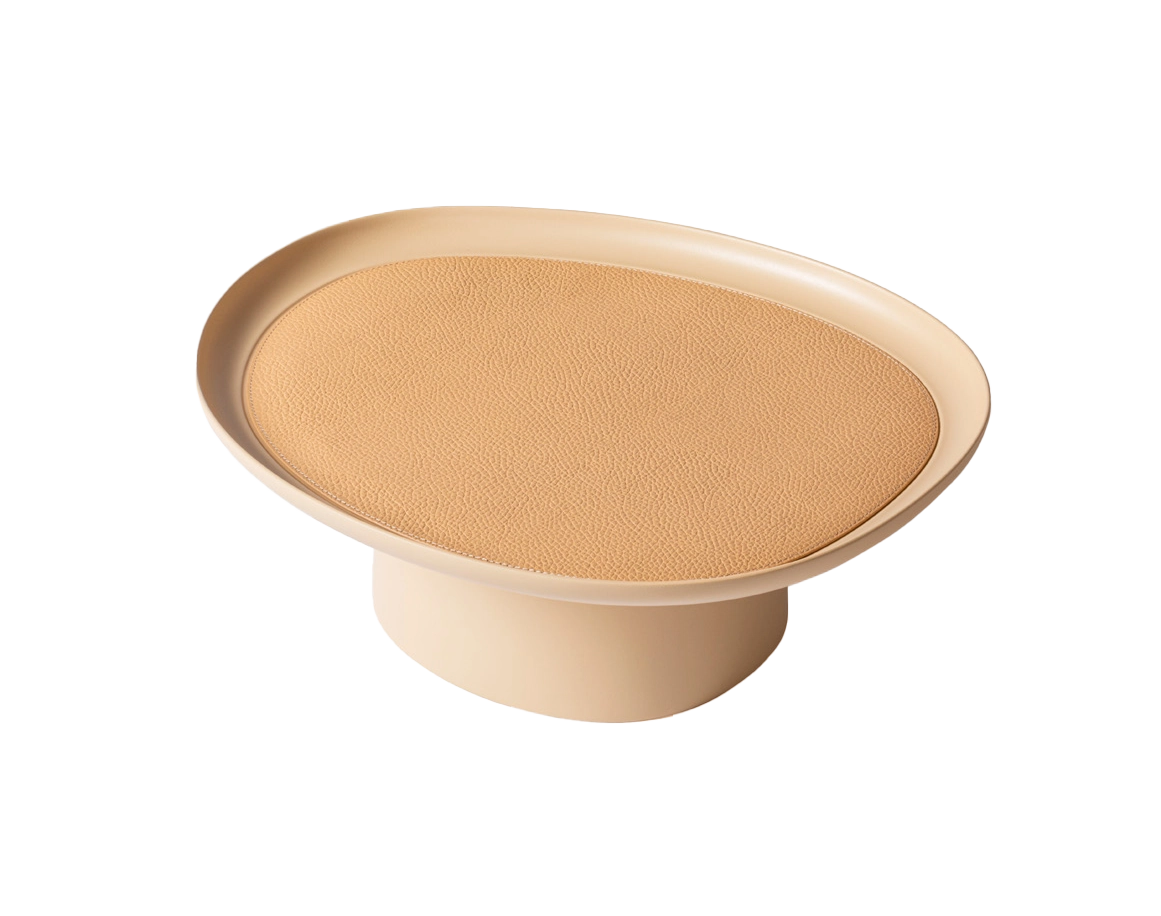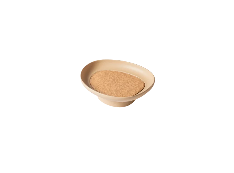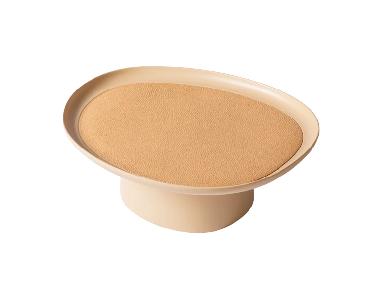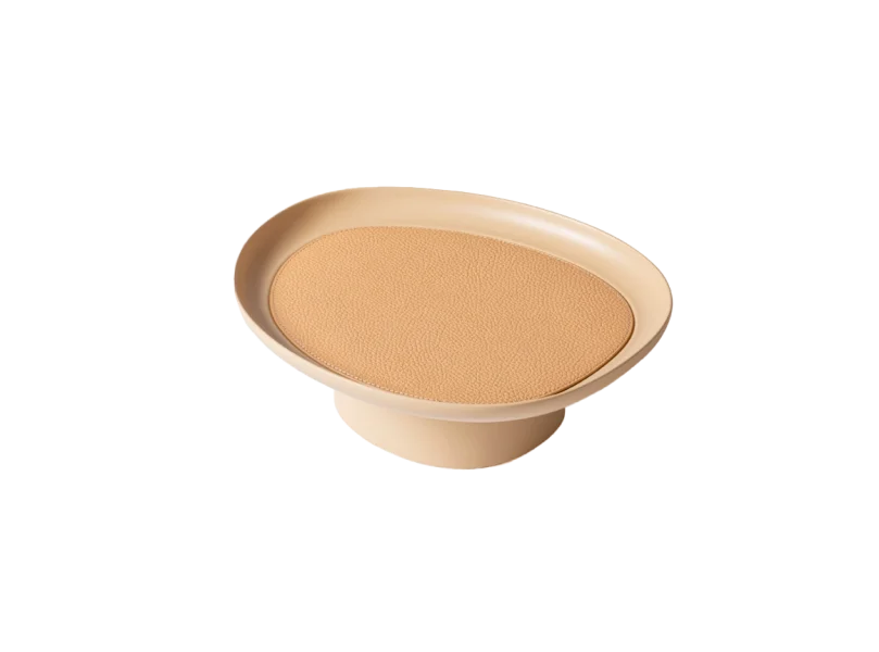 Подносы из литого алюминия с пескоструйной обработкой и съемной кожаной вставкой.