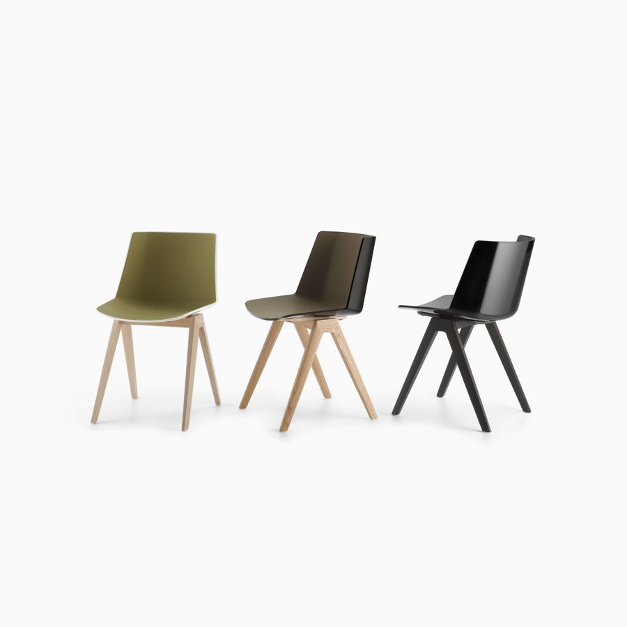 Основание из хромированной стали. Лакированное сиденье в оранжевом, красном, желтом, белом или черном цветах. Подставка для ног из бука натурального цвета.