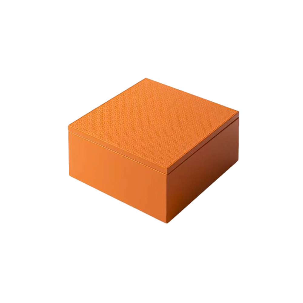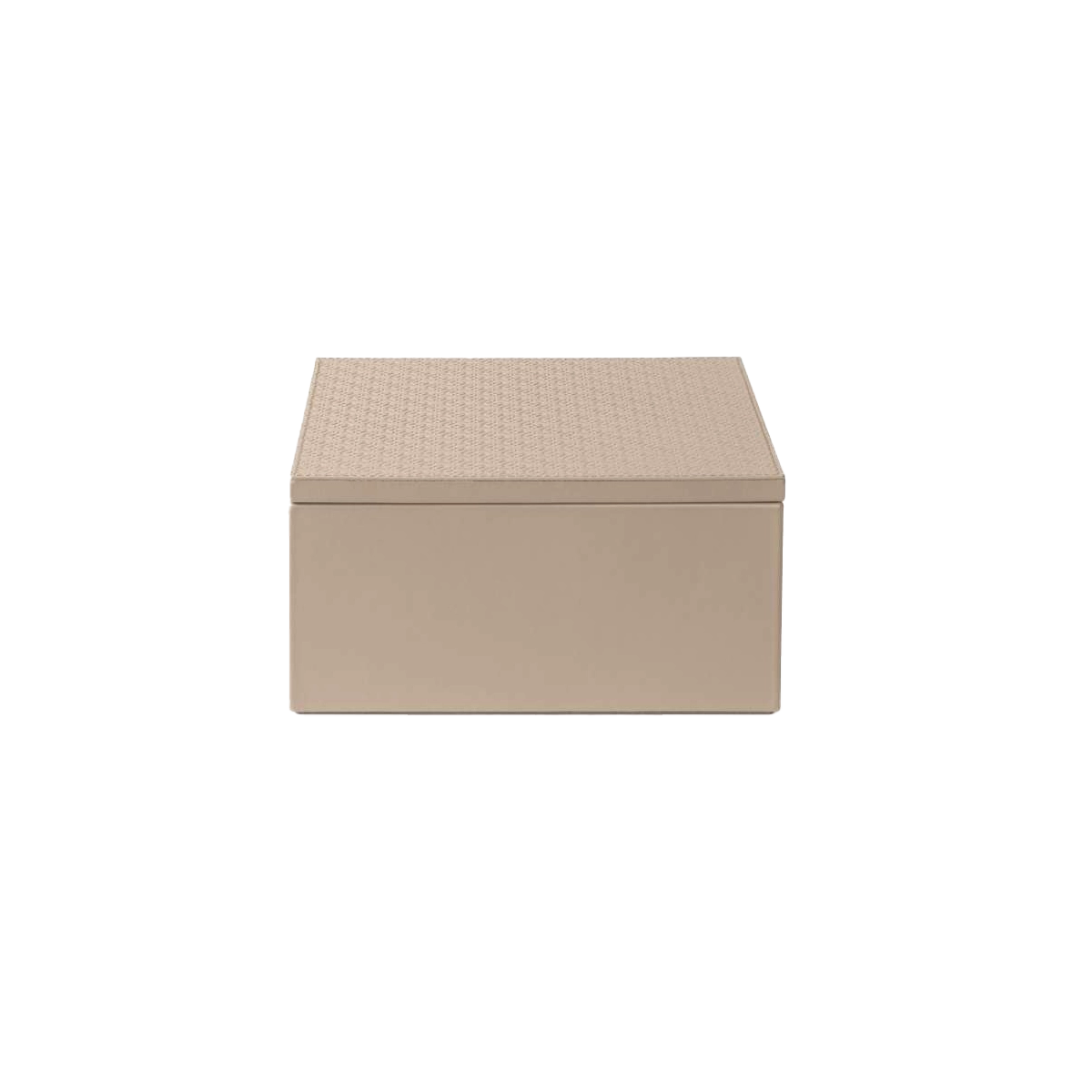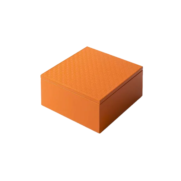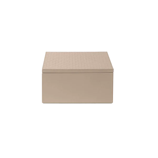 Коробка для печенья Monogram от Giobagnara x Elie Saab сочетает в себе роскошную кожу и элегантный узор на крышке.