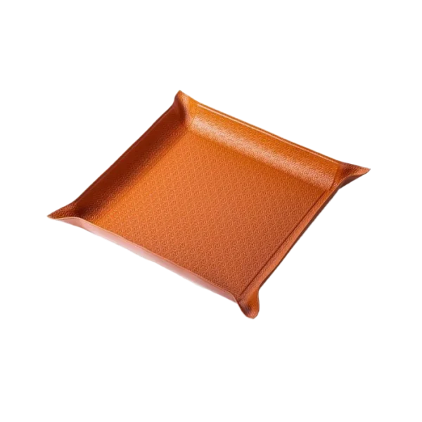 Гигантский квадратный поднос с кожаной подкладкой, украшенной монограммой ELIE SAAB.