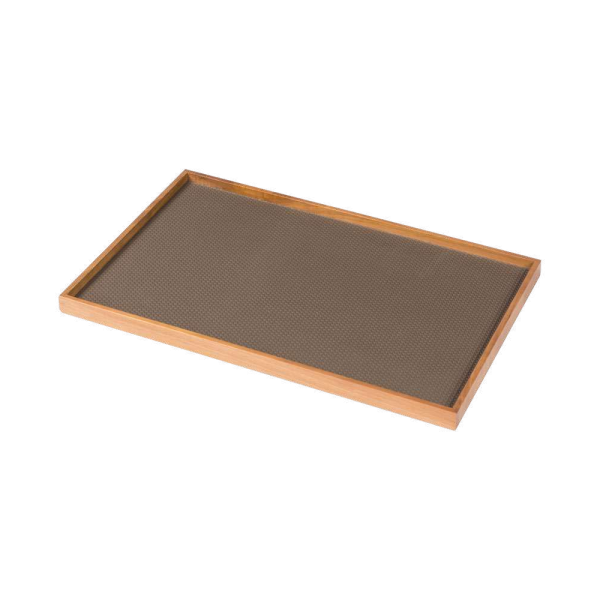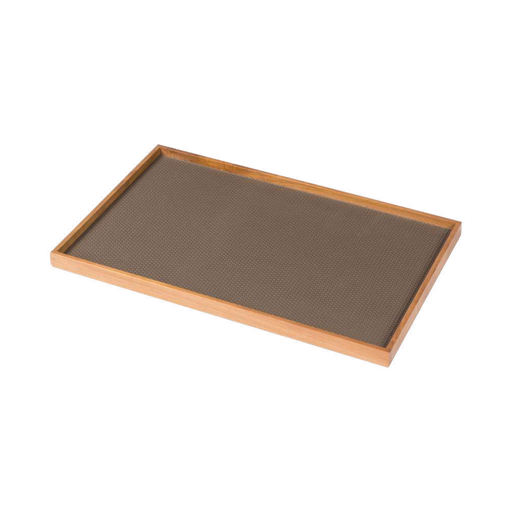 Лотки из орехового дерева с кожаной подкладкой геометрической формы, которые вставляются друг в друга. Выберите один из двух вариантов отделки краев: орех или орех венге. Обратите внимание, что при одинаковой форме маленькие подносы помещаются в маленькие, а большие — в большие.