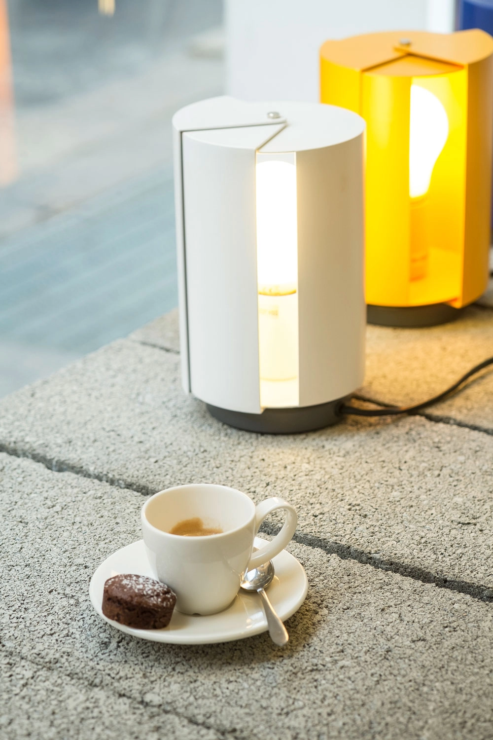 Авангардная икона 1950-х годов, Pivotante à Poser, была задумана Шарлоттой Перриан как архитектурный элемент. Световое излучение взаимодействует с текстурой материала, объемами, размерами и графическими знаками, созданными двумя вращающимися рассеивателями, которые позволяют как закрывать, так и открывать световой луч для прямого или непрямого освещения.