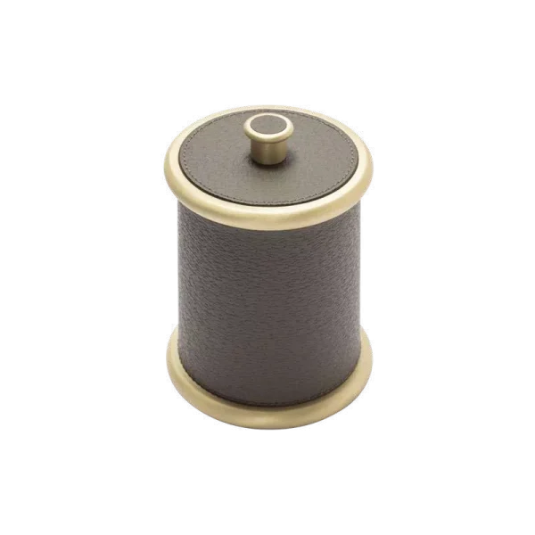 Жесткие цилиндрические основные объемы становятся мягче благодаря гладким декоративным закругленным краям, а тончайшая итальянская кожа с бархатистой текстурой в сочетании с одним из трех вариантов отделки (полированный хром, матовая бронза и матовая латунь) создают естественный элегантный дизайн.