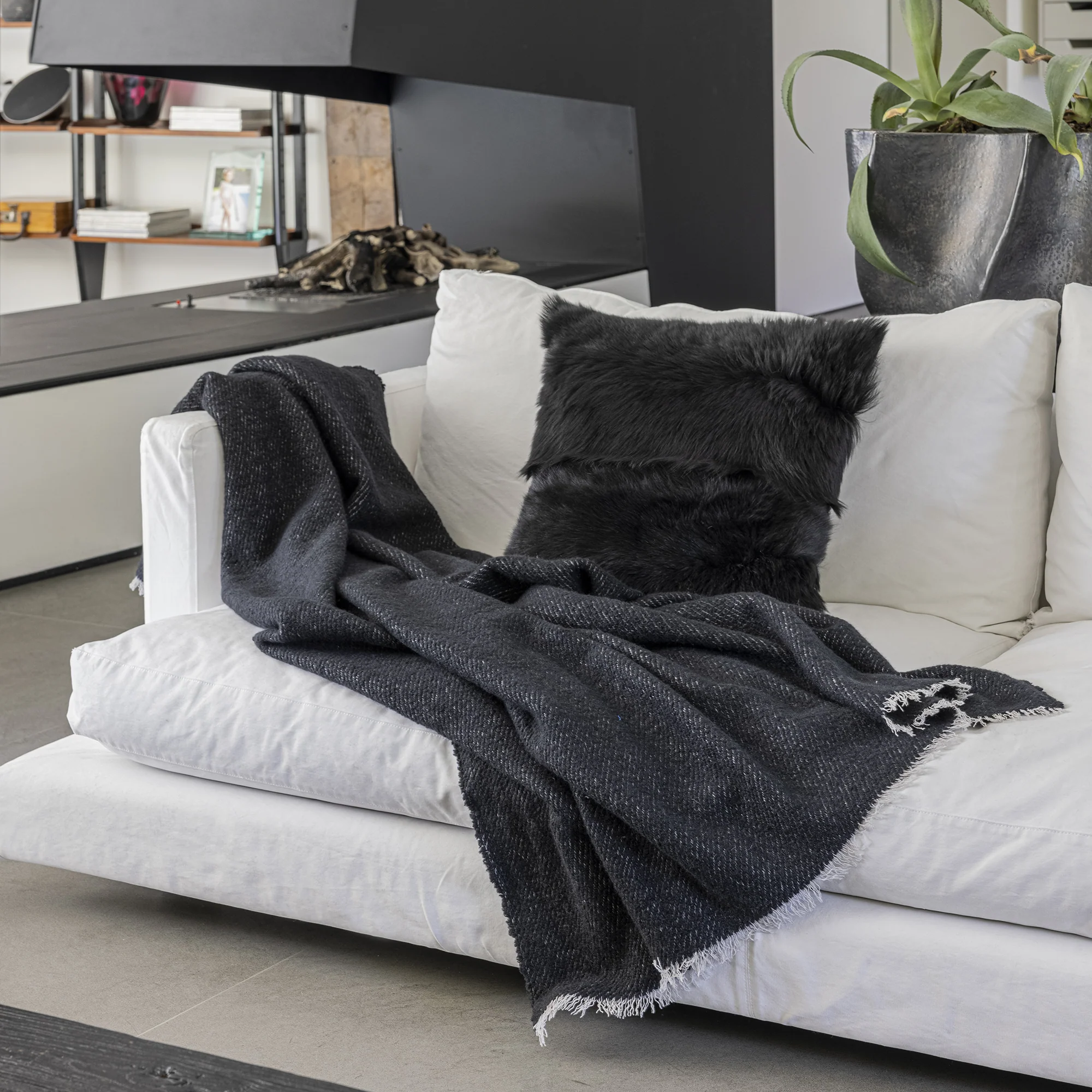 Плед REGION: CASHMERE & SILK TEXTURED THROW Black Alonpi