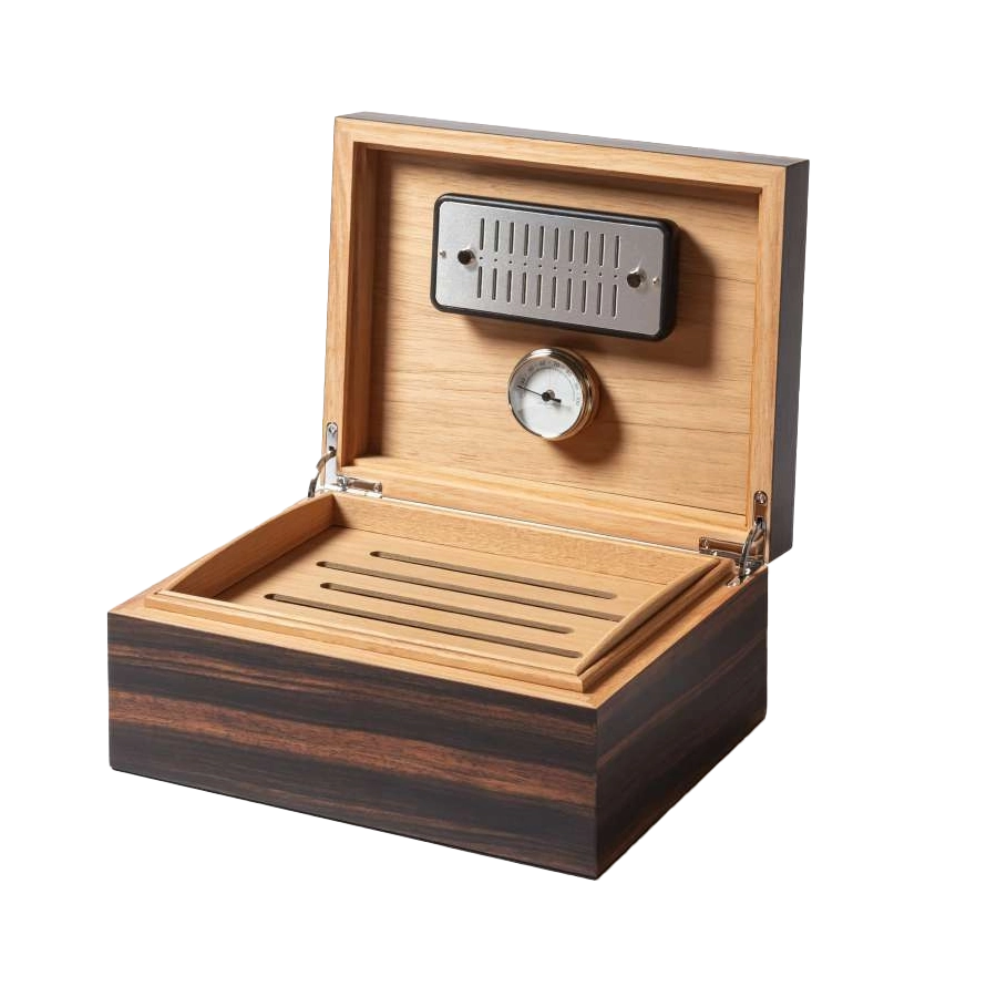 Хьюмидор, который обеспечит идеальный баланс влажности, благодаря обшивке из кедра и дополнительному увлажнителю и гигрометру. Снаружи конструкция выполнена из орехового дерева с внешней обивкой из тонкой кожи. Цвет и тип кожи можно изменить, выбрав один из множества вариантов, предлагаемых коллекцией Giobagnara.
