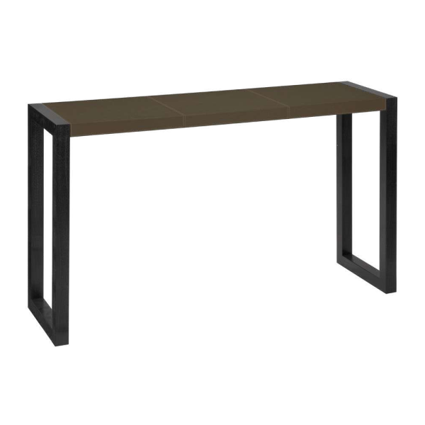 Дубовая конструкция, обтянутая кожей (предлагается в трех вариантах отделки), с инкрустацией кожей сверху и по бокам.