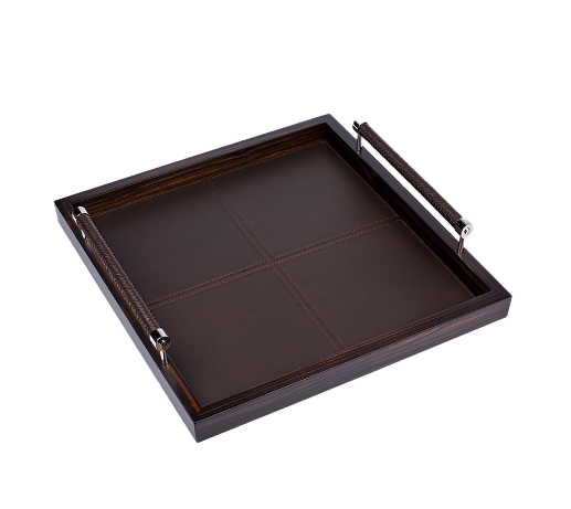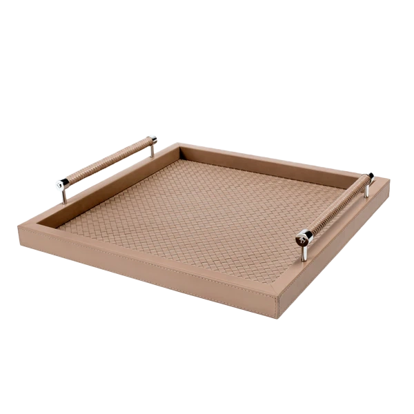Поднос Diana Handwoven Leather Tray with Leather Handles Square