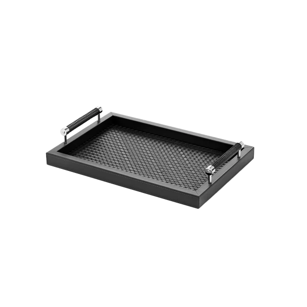 Поднос Diana Handwoven Leather Tray with Leather Handles Rectangular Small
