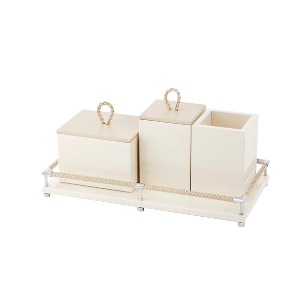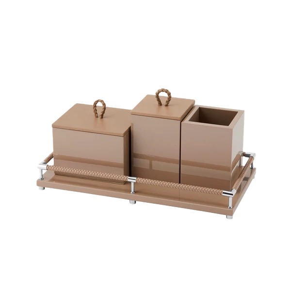 Шкатулка Thea Lacquered Wood Trinket Container Box with Leather Lid Square High
